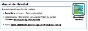 Benutzung und Anmeldung richten sich nach den Bestimmungen der Satzung der Gemeindebibliothek Gauting.