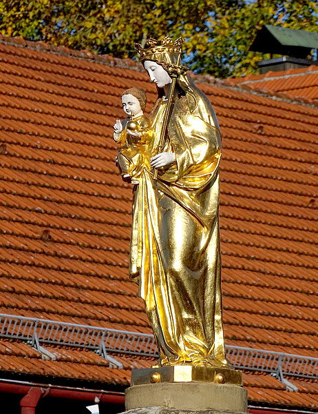 Sie besteht aus einem Sockel aus Nagelfluh, einem lokal vorkommenden Sedimentgestein. Der Aufbau besteht aus Marmor.