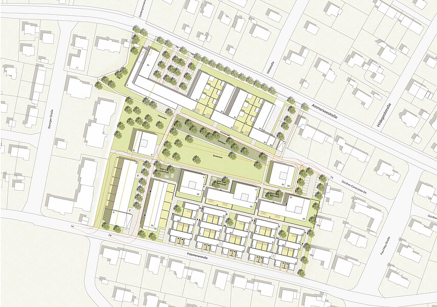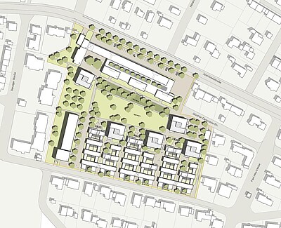 Momentan laufen auch weitere wichtige Planungen: Es geht um Verkehrsflächen – wie weit können diese reduziert werden, dass dennoch kurze Wege zu Fuß und mit dem Rad ermöglicht werden können. Die Versickerungsfähigkeit des Bodens ist angesichts zunehmender Starkregenereignisse ebenfalls ein wichtiges Thema. Eine wichtige Änderung der letzten Zeit betrifft die Höhe der Bebauung: Diese wurde im Westen deutlich verringert und die zugelassene Baumasse dadurch insgesamt weiter reduziert.