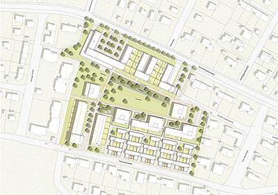Im Plangebiet liegen die Flächen von vier Eigentümern, die konsensual eine Einheit aus bezahlbarem Wohnraum in einem modernen Quartier schaffen wollen. Gemeinderäte haben dem Projekt den Namen „sozial-ökologische Mustersiedlung“ gegeben. Neben einem Mobilitätsmanagement mit alternativer Mobilität, ökologischen Ansätzen, Nutzung von regenerativer Energie, intensiver Begrünung, Nachhaltigkeit etc. ist auch ein Quartiersmanagement angedacht. Die Menschen, die dort wohnen werden, sollen direkte Ansprache z.B. für Problemlösungen finden. Aufgabe des Managements wäre es aber auch, verbindend tätig zu sein und Möglichkeiten zur Begegnung zu schaffen.