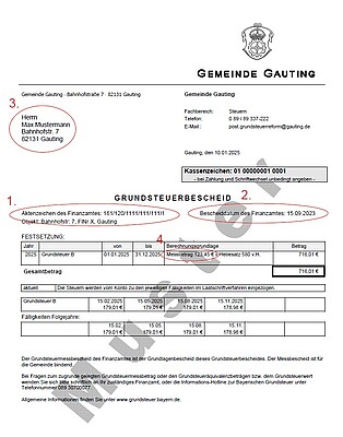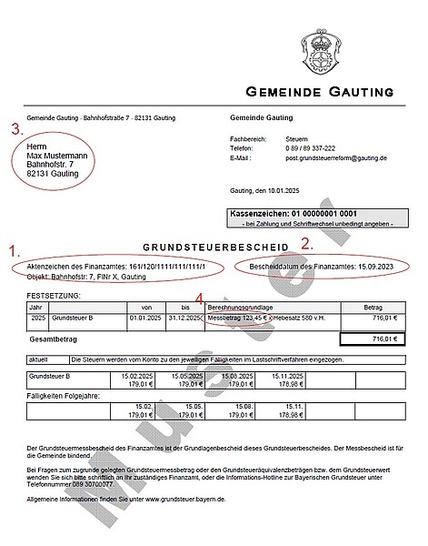 Wir weisen darauf hin, dass Eigentümerwechsel welche im Jahr 2023 und 2024 erfolgt sind, zum Großteil noch nicht durch das Finanzamt umgeschrieben werden konnten. Die Gemeinde Gauting kann den Grundsteuerbescheid erst aufheben, sobald dieser durch das Finanzamt aufgehoben wurde. - Messbetrag